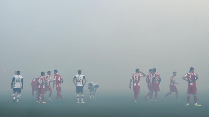 Die zweite Halbzeit beginnt mit Pyro, Böllern und Gesängen. "Ubi, Ubi, Ubi! (Stirb, Stirb, Stirb!)" In der 65. Minute wird das Spiel abermals unterbrochen, bis die dichte Pyronebelwand wieder in den Nachthimmel entfleucht. Eine Minute später die nächste Unterbrechung. Diesmal schwebt Pyro bis aufs Spielfeld. Die Grobari sind missgelaunt. Die Saison war verheerend, im Europapokal flogen sie ausgerechnet gegen ein deutsches Team raus.